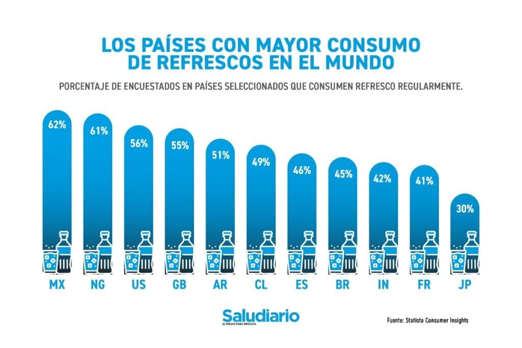 Para identificar a los países con mayor consumo de refrescos, la base de datos Statista realizó una encuesta global e identificó a las naciones con mayor porcentaje de personas que ingieren este tipo de bebidas de manera cotidiana.